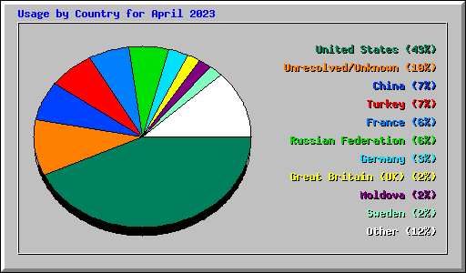 | # | Hits | Files | kB F | kB In | kB Out | Country | |||||